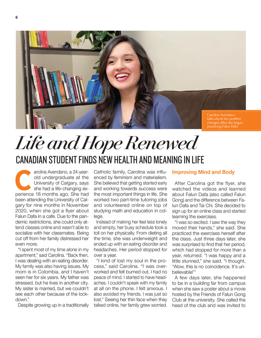 - Life and Hope Renewed: Canadian Student Finds New Health and Meaning in Life