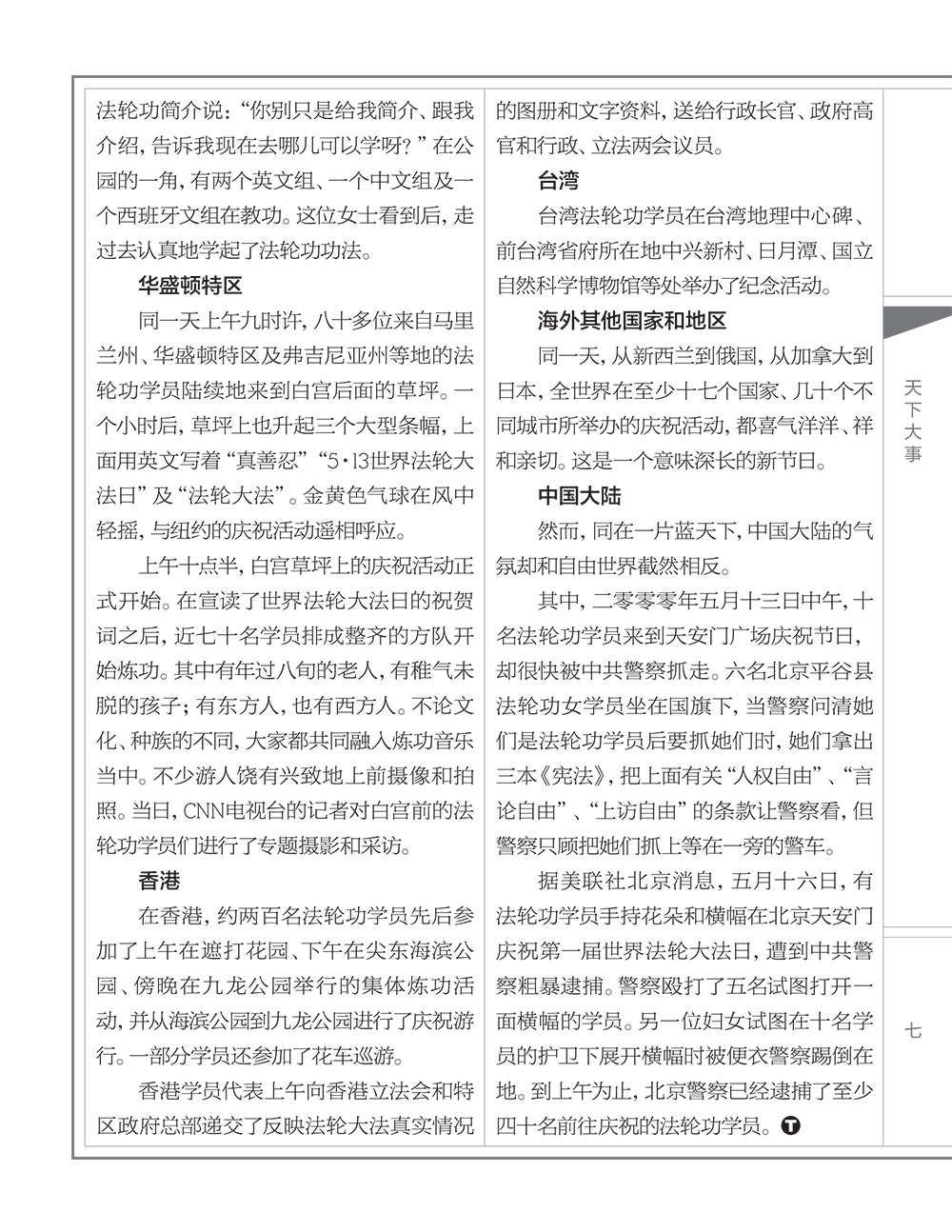 3、中共對法輪功的迫害結束之前,中国大陆有条件打印A3的資料點,请通过安全的渠道向《天地蒼生》编辑部索取打印文件,免費提供給中國大陸的適用讀者群。
